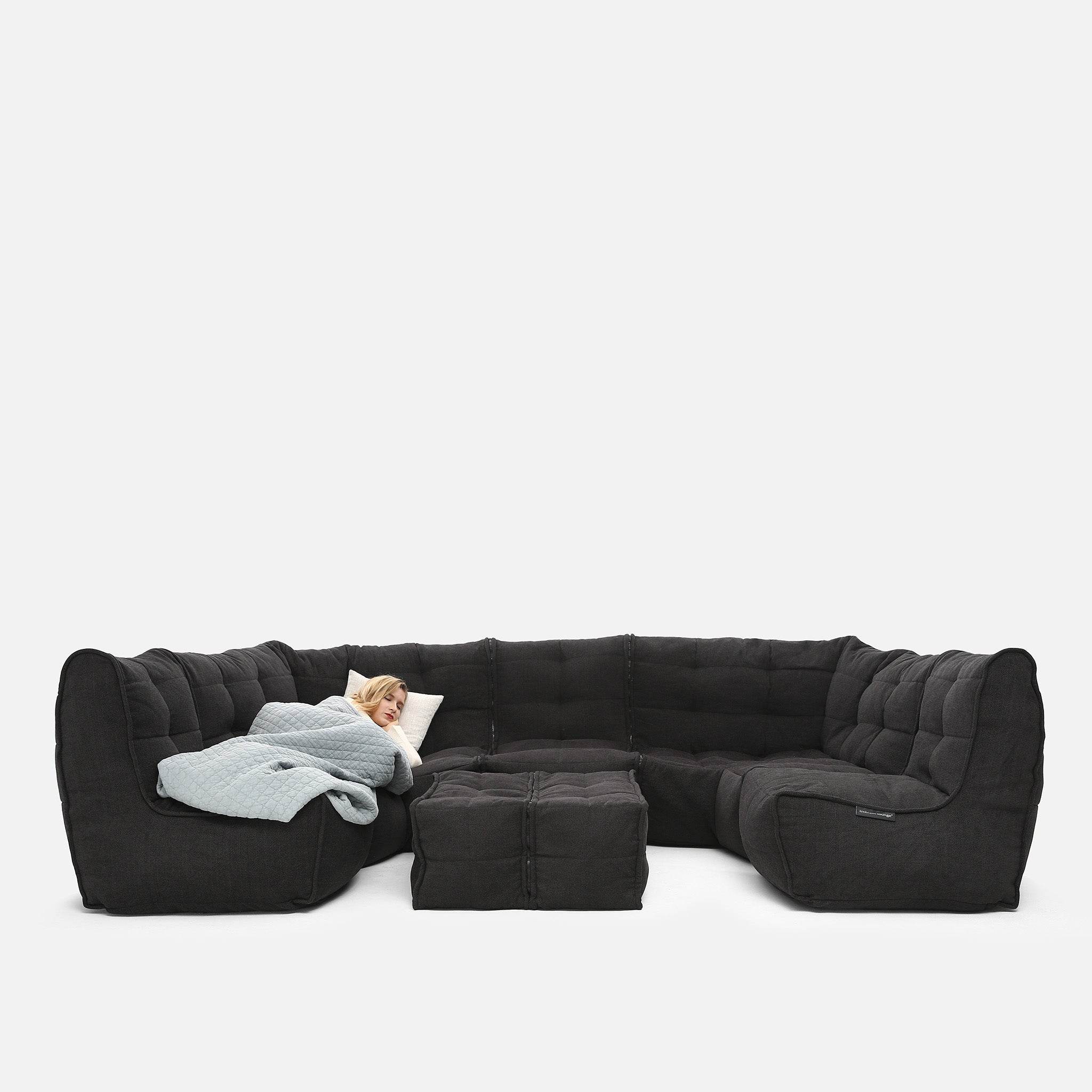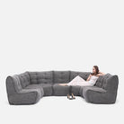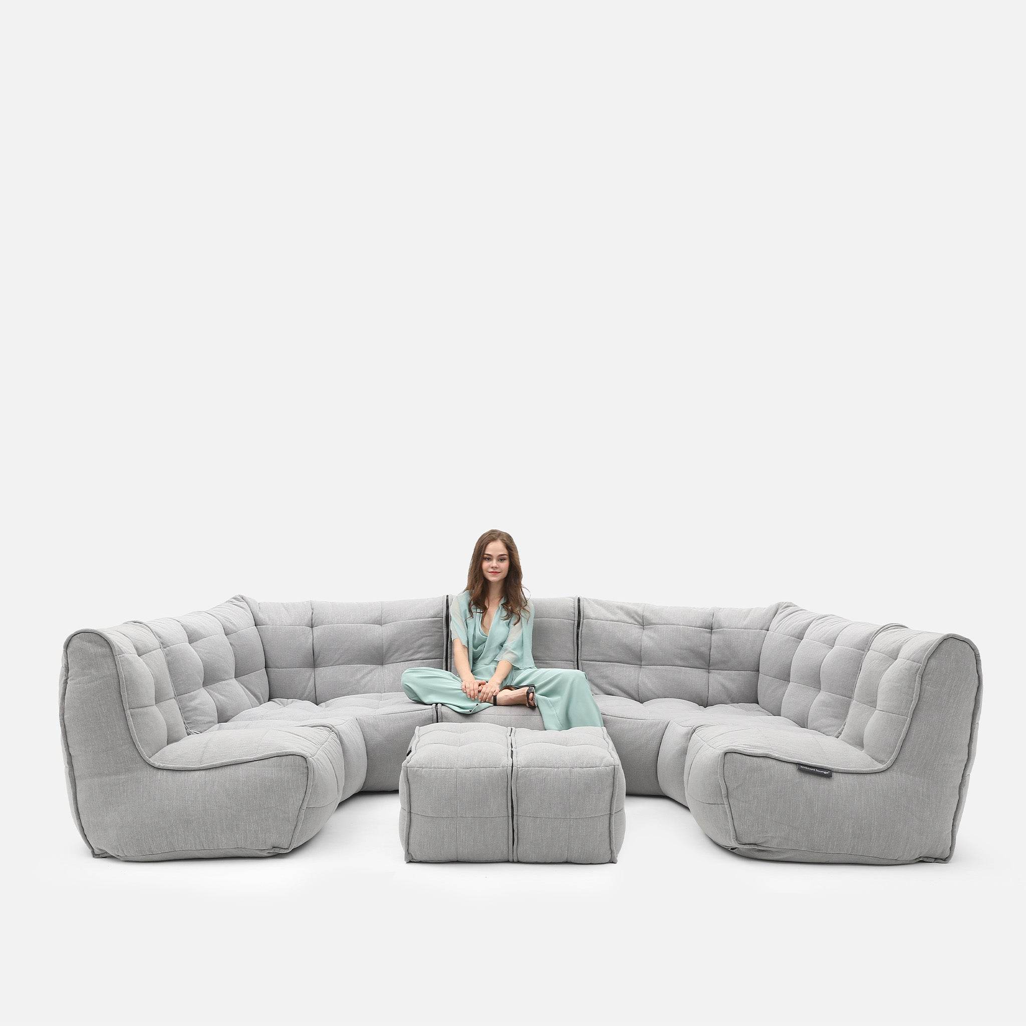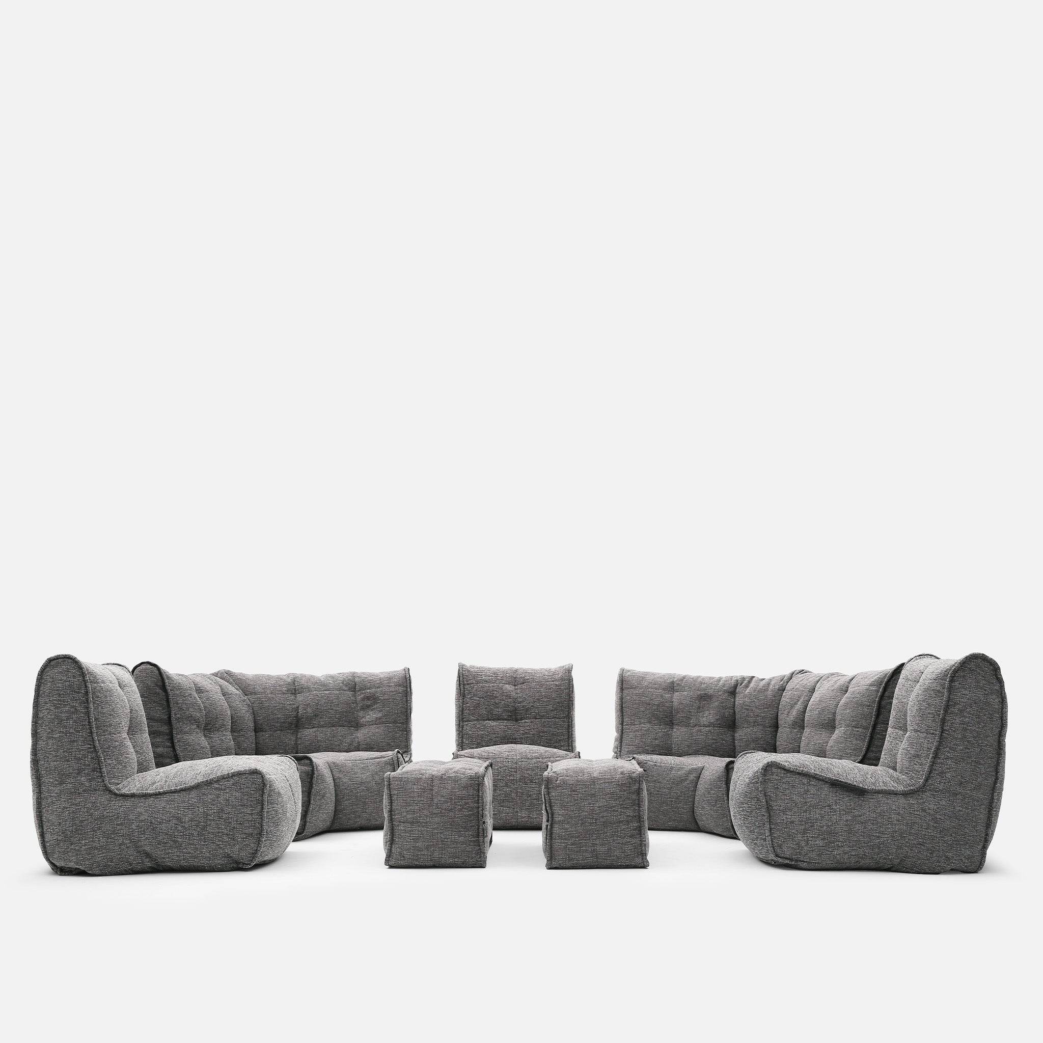 With six lightweight modular pieces, you can re-arrange and reconfigure endlessly—from a sprawling lounge to a cozy corner retreat, to a full home cinema setup. Its versatility means it can evolve with you: movie nights, entertaining guests, or just stretching out in peace at the end of the day. It also means that hard to get to spaces like lofts, basements and places with narrow staiors or doorways are perfect for this sofa setup.