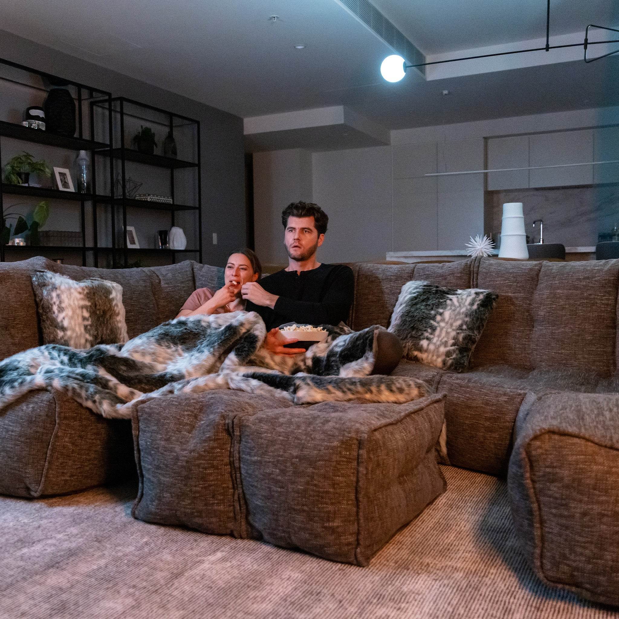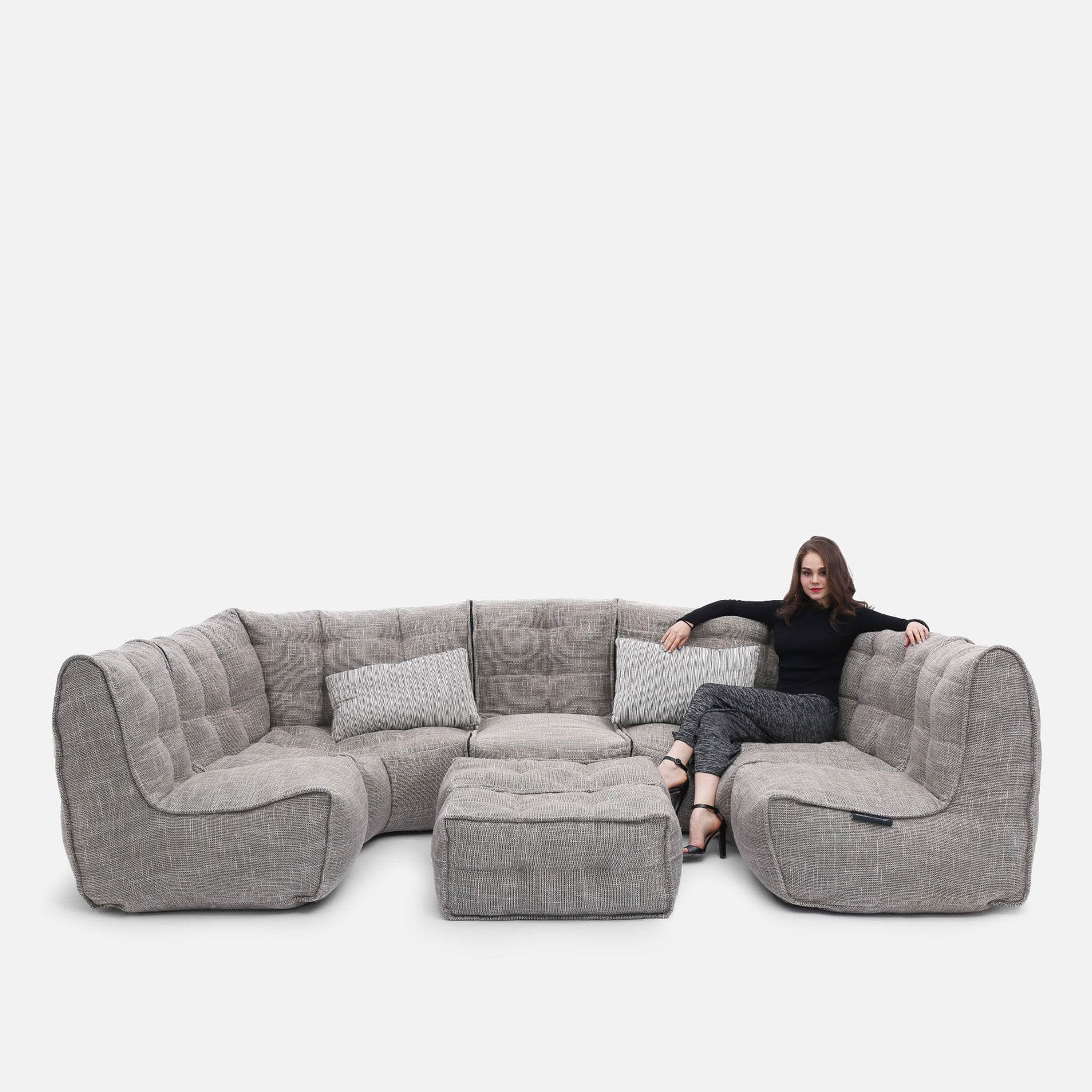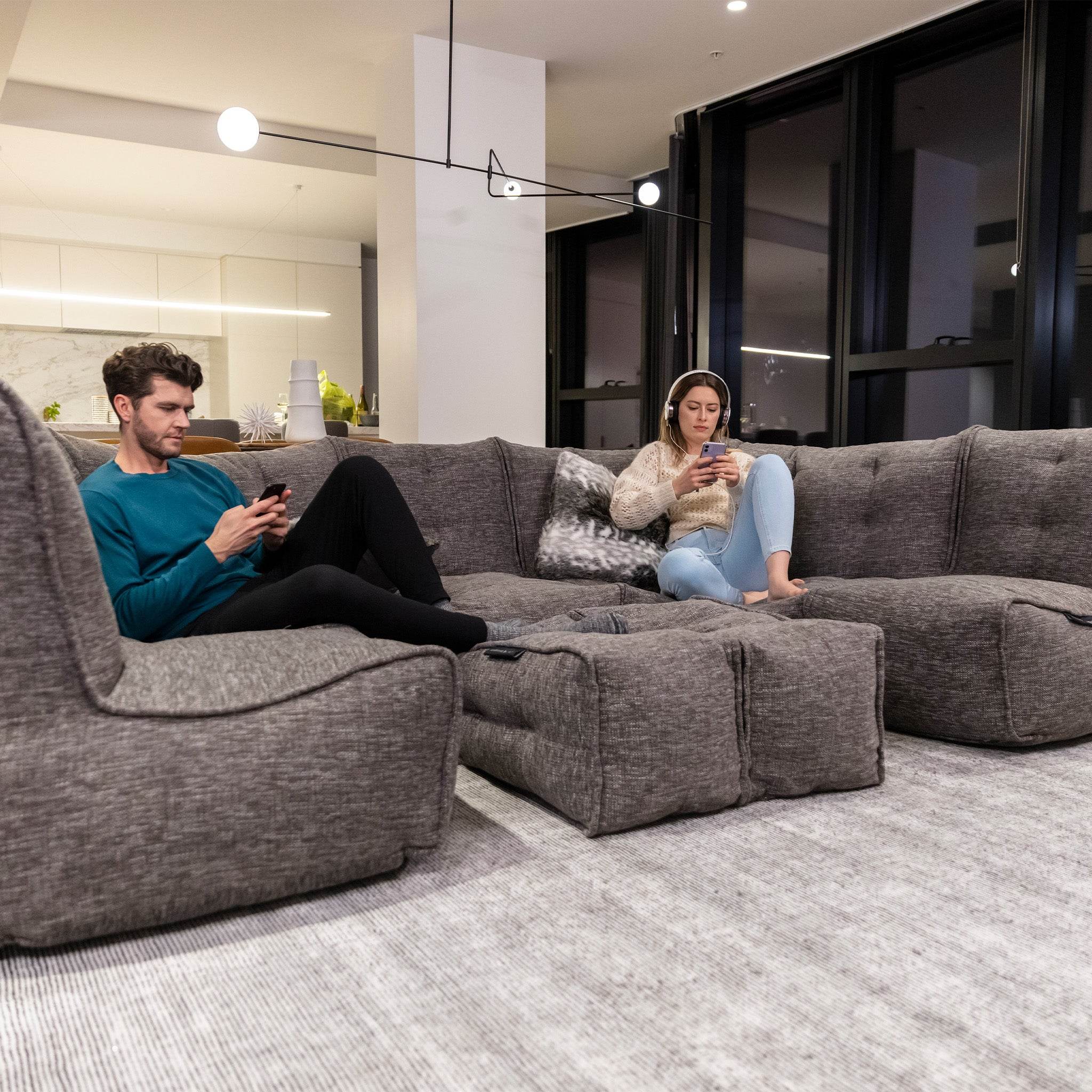With six lightweight modular pieces, you can re-arrange and reconfigure endlessly—from a sprawling lounge to a cozy corner retreat, to a full home cinema setup. Its versatility means it can evolve with you: movie nights, entertaining guests, or just stretching out in peace at the end of the day. It also means that hard to get to spaces like lofts, basements and places with narrow staiors or doorways are perfect for this sofa setup.